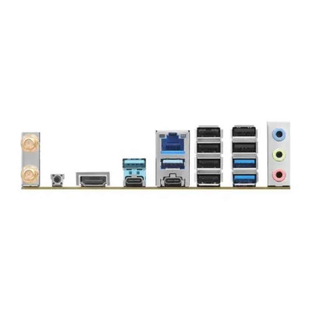 | Internal I/O Ports | Rear Panel I/O: - 2 x Antenna Ports - 1 x HDMI Port - 1 x USB 3.2 Gen2 Type-C Port (10 Gb/s) - 1 x USB 3.2 Gen1 Type-C Port (DP-alt mode supports DP1.4a) - 4 x USB 3.2 Gen1 Type-A Ports - 6 x USB 2.0 Ports - 1 x RJ-45 LAN Port - 1 x BIOS Flashback Button - HD Audio Jacks: Line in / Front Speaker / Microphone |
